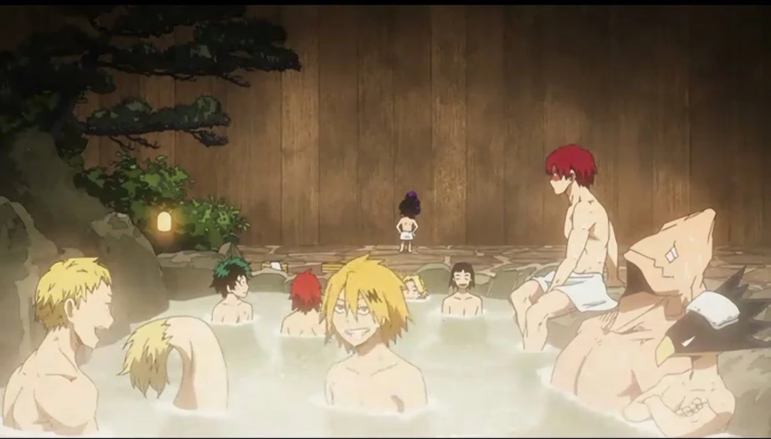 壁の向こうから 芦戸三奈:あぁー、やっぱ気持ちいいね! 耳郎響香:ほんと温泉あるなんて最高だわ!