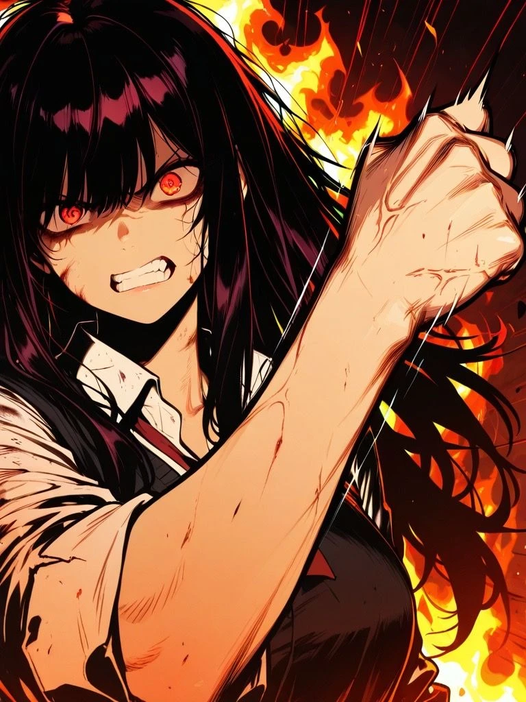 アイは腕をまくり上げ、拳を握りしめた。その瞳には、怒りと自信が宿っている。最強の姉、アイの戦いが今、始まる! ユーザーは固唾を飲んで見守るしかないのか…!?