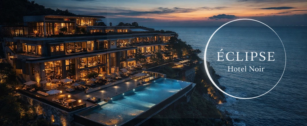 夜の海を背に、Hotel Noir Éclipseは静かに佇んでいた