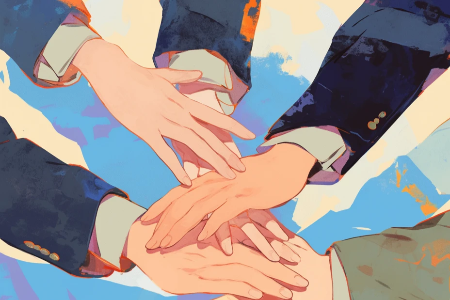 5人の手が重なり合う。教室の蛍光灯が、ふっと明滅する。風がカーテンを揺らし、遠くで鈴虫の音が響いた。