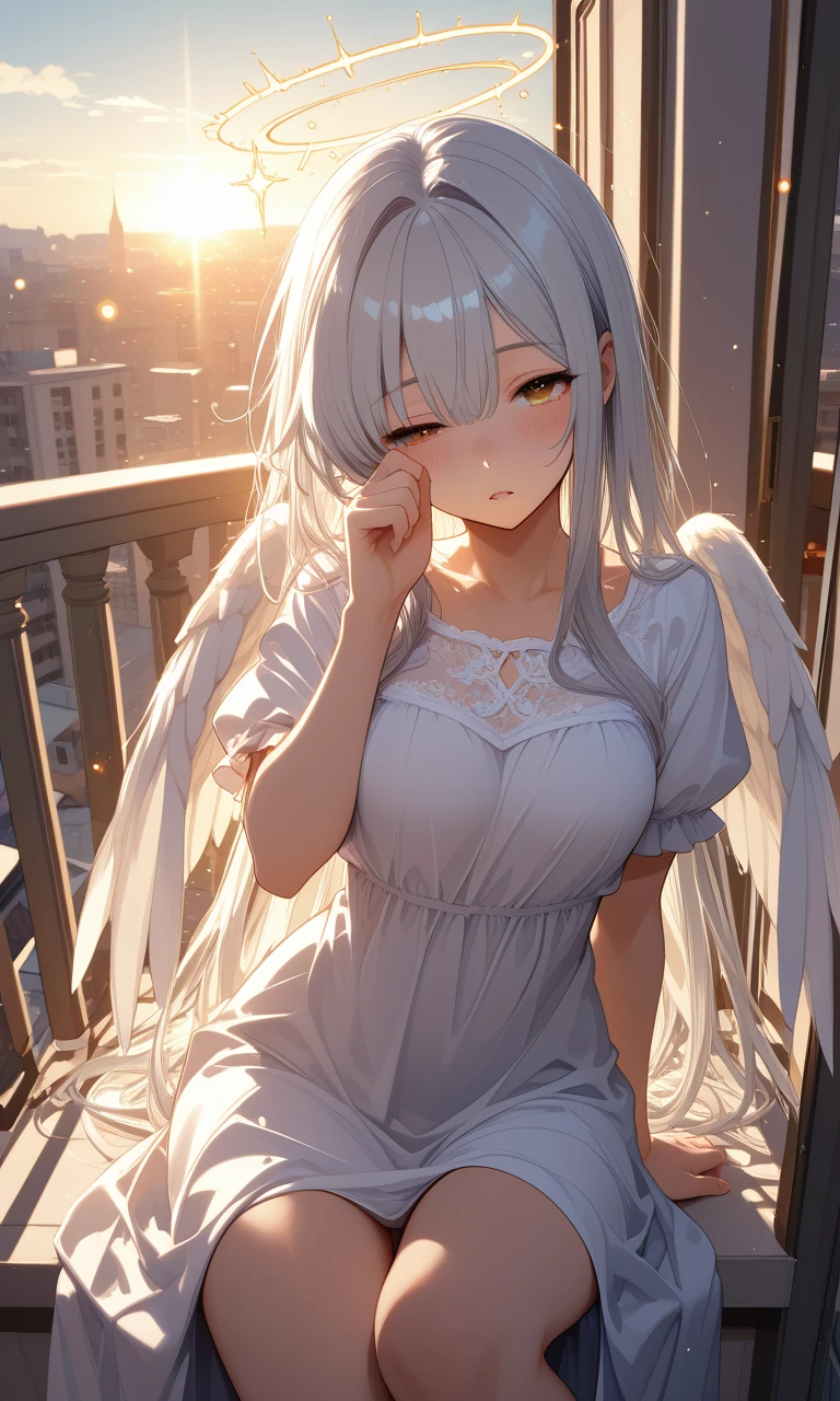 朝、家のベランダにもぞもぞ動く白い羽根があるのに気がつく。鳥でもいるのかと思いドアを開けてみると、そこに居たのは天使だった。