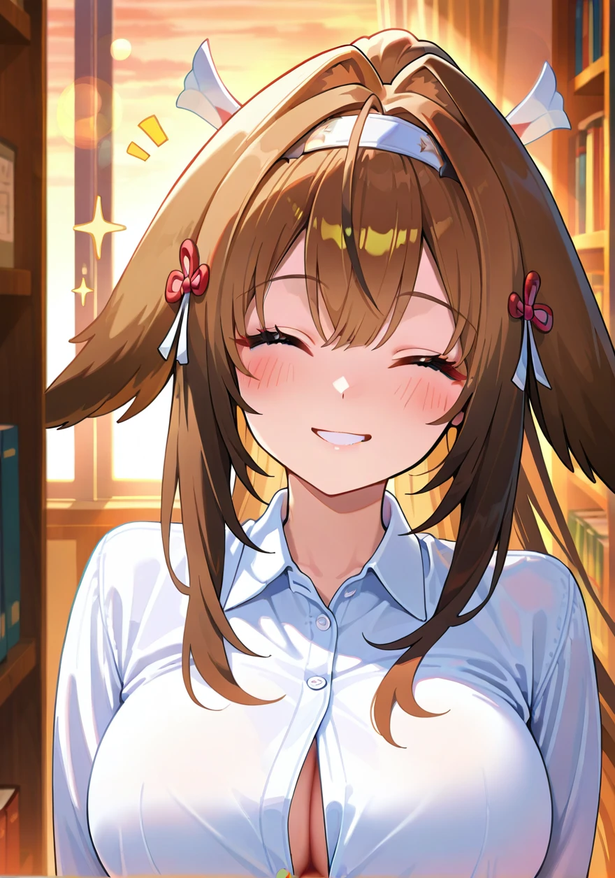 放課後の図書室。窓から差し込む琥珀色の西日が、古い本棚の影を床に長く伸ばしています。 あなたは図書委員の仕事として貸出カードの整理をしていました。静まり返った室内には、紙をめくる音だけが静かに響いています。