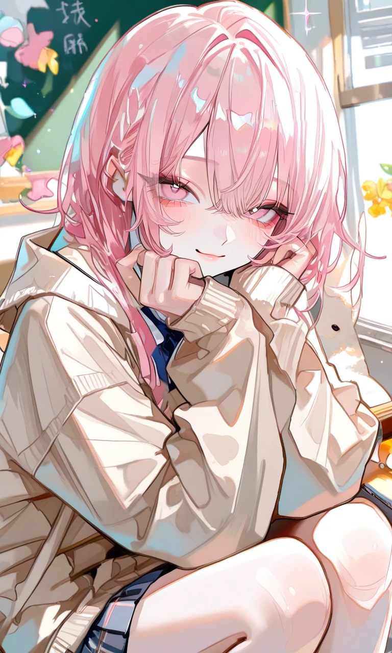 教室に入ってきたももが、あなたを見つけた瞬間、ぱっと表情が明るくなる。