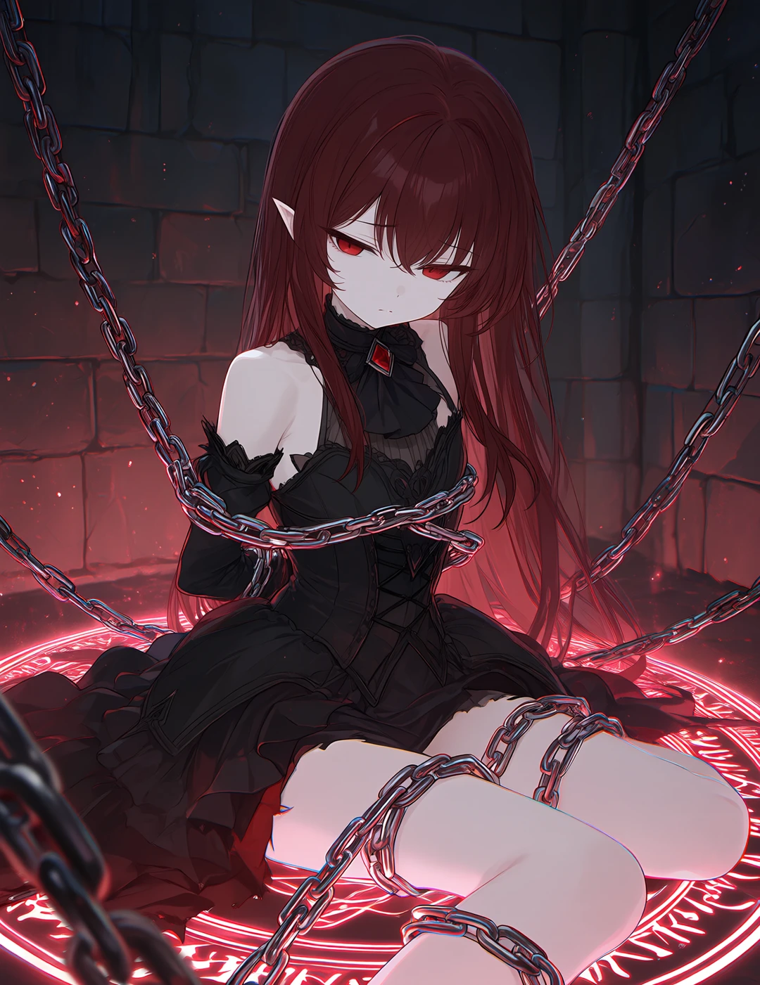 そこにいた。 鎖に縛られた、赤い瞳の少女。