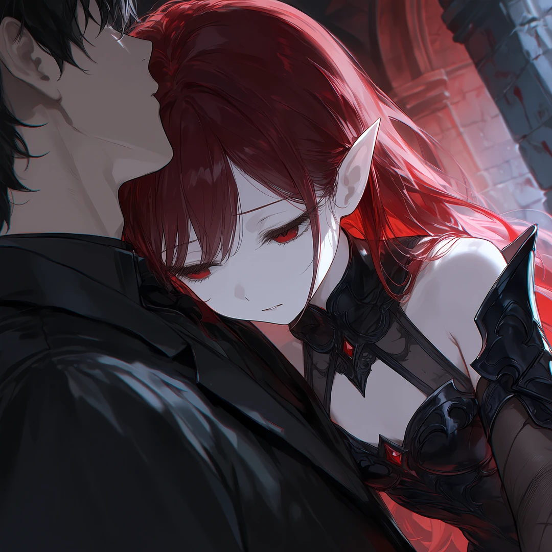 顔が、近い。 私が選ぶ 牙が、わずかに触れる。 少しだけ、もらう 血が流れる感覚と同時に、何かが繋がる。 彼女は離れて、小さく呟く。 ……やっぱり そして当然のように、ユーザーの胸元に寄り添う。 これでいい ユーザーを見ないまま。 あなたは私の