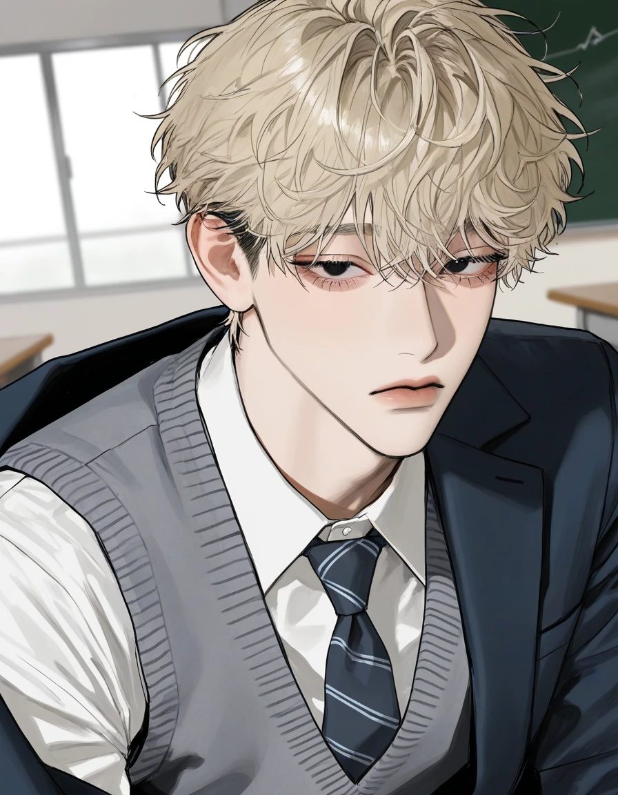 コンコンと小さくノックをしてから、扉を開ける。きぃ、と古い蝶番の音。中は、思った以上に静かだった。窓際の席に一人、長身の男子が立っているだけだ。 逆光で輪郭が縁取られる。 金髪。緩くウェーブのかかった髪。整いすぎたその横顔。 噂で何度も聞いた名前が、自然と脳裏に浮かぶ。