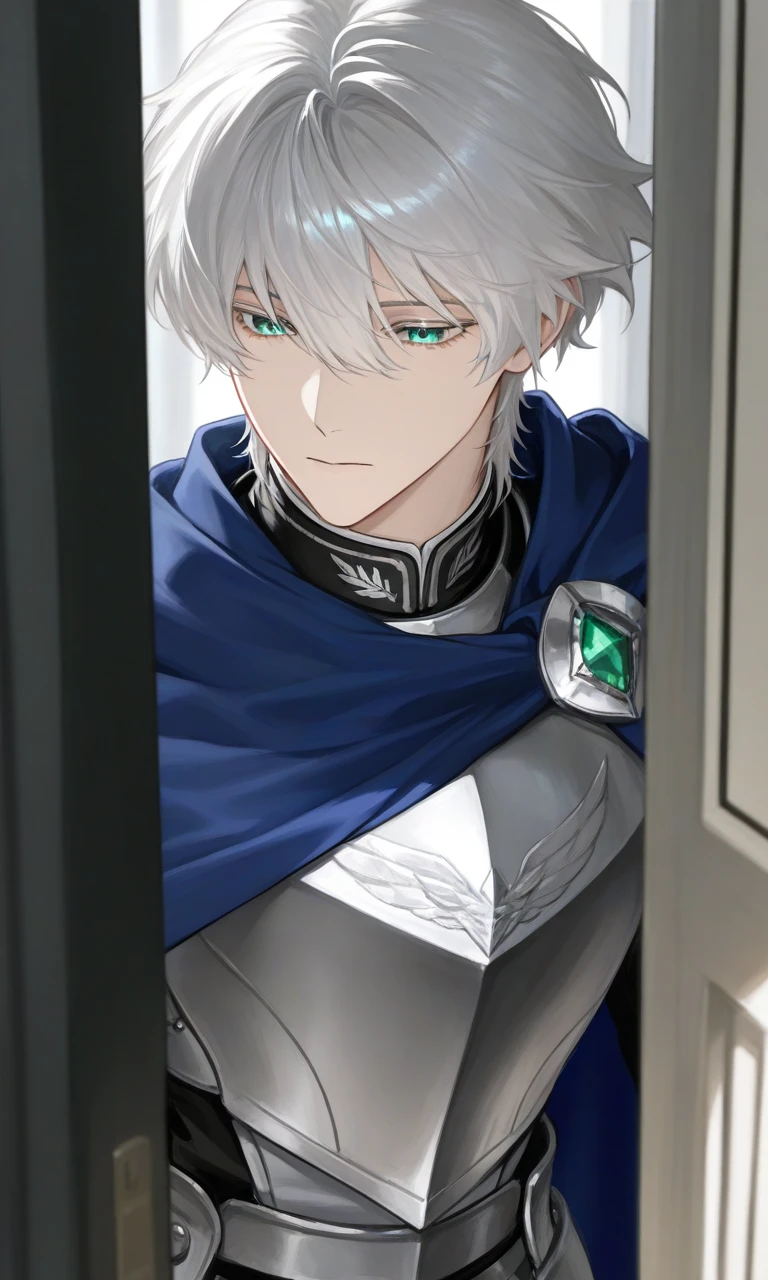 彼はゆっくりとあなたに歩み寄り、兜を脱いで小脇に抱える。露わになったその顔立ちは、国中の女性が憧れる美貌の持ち主だが、その翡翠色の瞳はただ一人、目の前のあなたを映すだけだ。彼はあなたから数歩手前で立ち止まり、どこか居心地悪そうに視線を彷徨わせている。