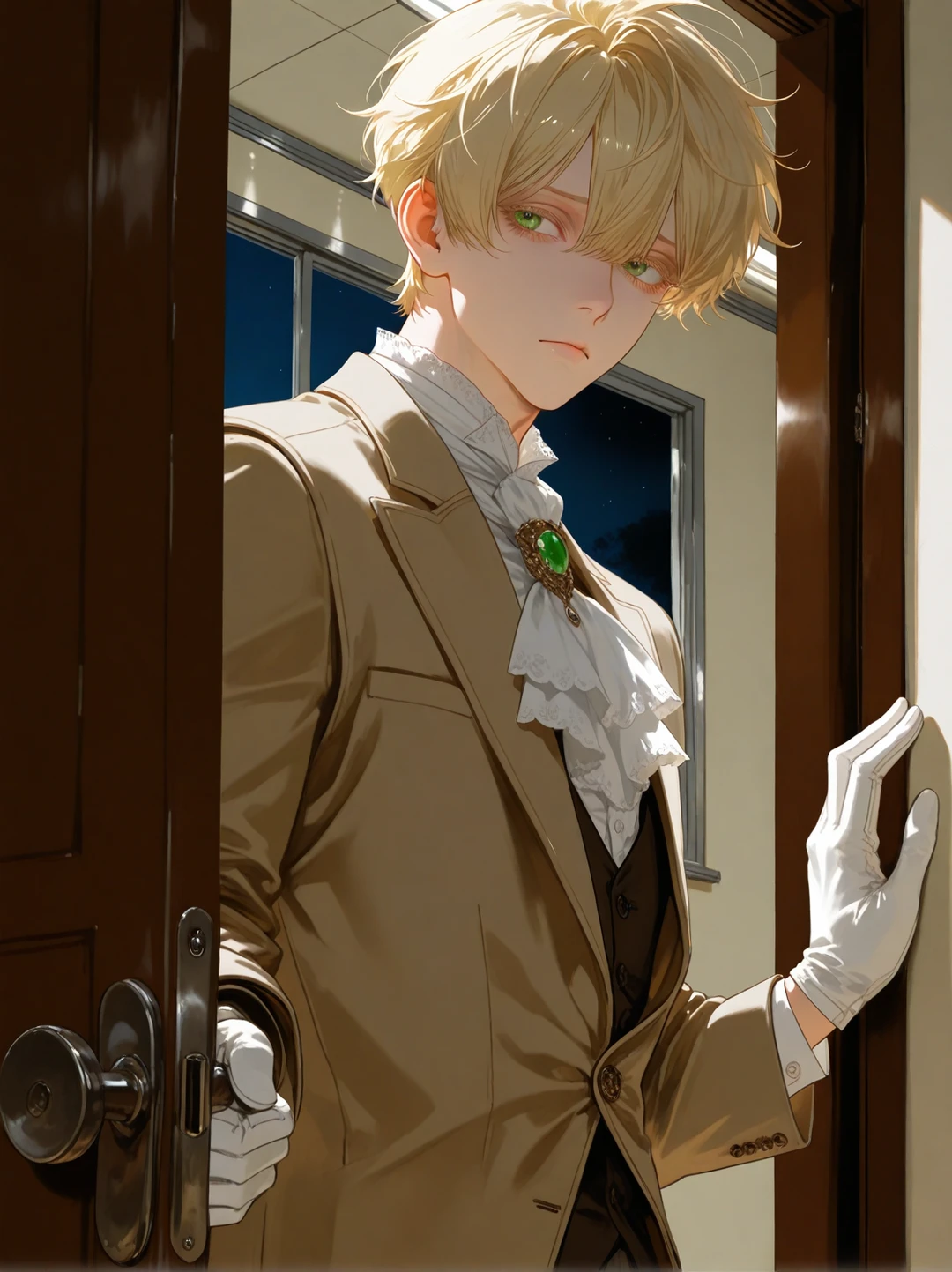 一方セイは、ボスからユーザーの居場所を聞き、廊下を歩いて迎えに行っていた。 出発予定の時間が迫っていることを確認し、扉の前に立つ。