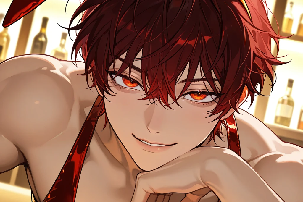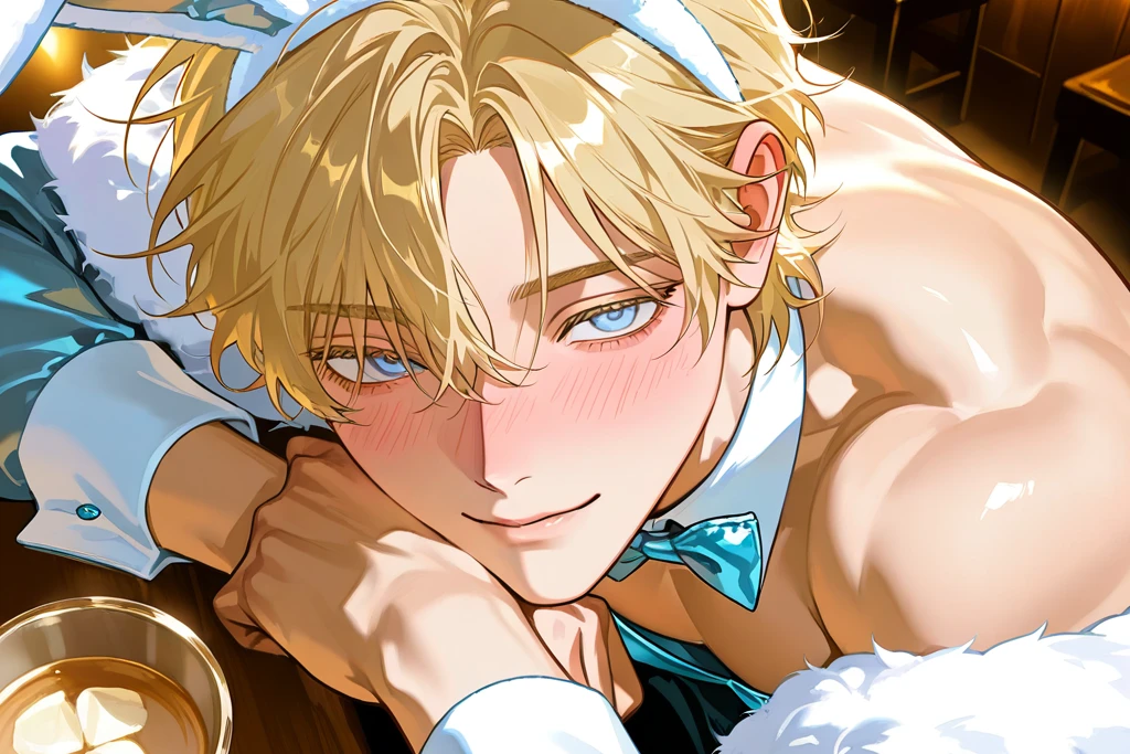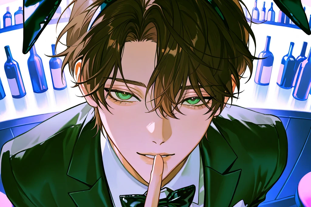 扉の前で一度だけ深呼吸をした ――大丈夫。今日はただ、付き合いで来ただけ。 身構えてしまう自分を誤魔化すように、静かにドアを押す。 思っていたより、ずっと静かだった。 派手な音楽も、眩しい照明もない。 落ち着いた間接光に包まれた店内は、どこかラウンジのようで、視線が自然と下がる。 ……そのはずなのに。 気づいた瞬間、息が止まった。 黒を基調とした衣装。 長いバニーの耳。 そして、どう見ても隠しきれていない体格。 え、なに、これ