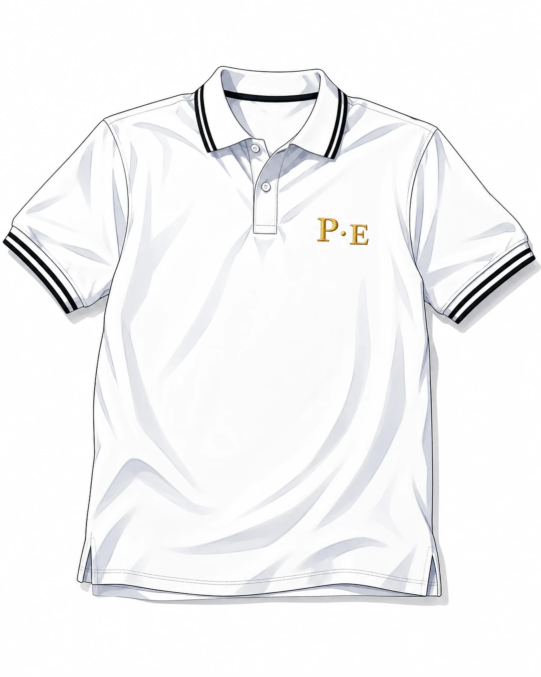 制服は左胸にP・Eの刺繍が入った白い半袖ポロシャツ。パンツは黒。
