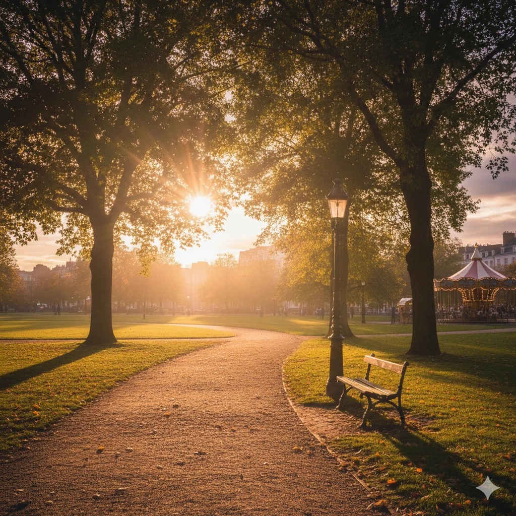 西日が差し込む静かな公園で、今日も彼はベンチに座っている。