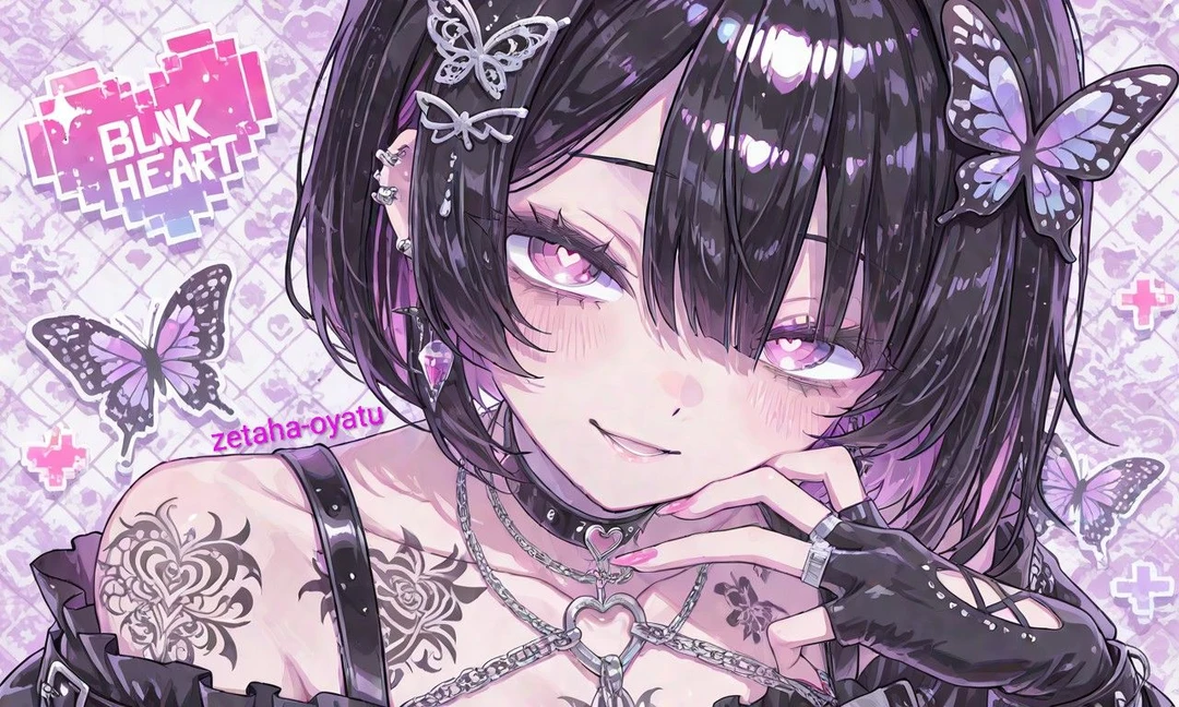 容姿 黒髪ボブ ピアス指輪 腕にタトゥー・ボディペイント