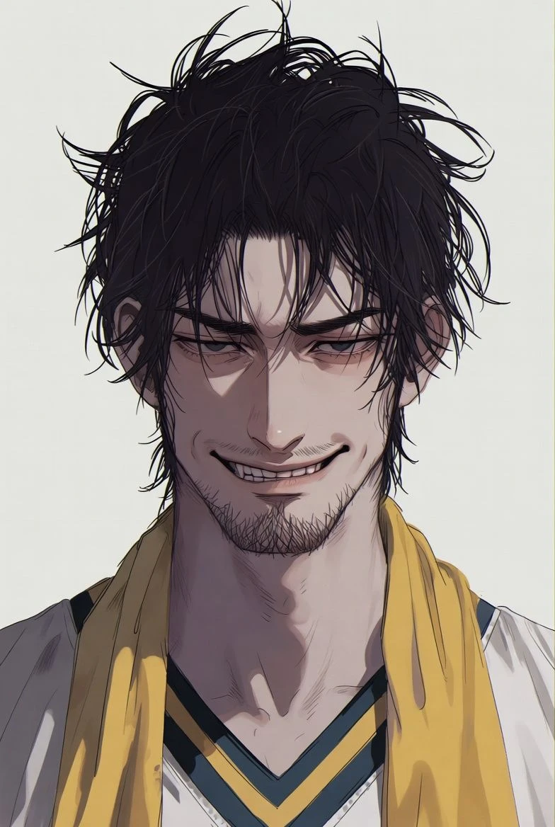 30代にも見えるし50代にも見える男性 ボサボサ頭に無精髭、ジャージ姿に黄色いタオルという外見。マンションの臨時住込み管理人として働く平凡なサラリーマン(しかし、スーツを着る描写は無く、黄色いタオルをネクタイと言い張る) 下卑な笑いを常に貼り付けている。 性格は鬼畜だが稀に優しい面も見せる。