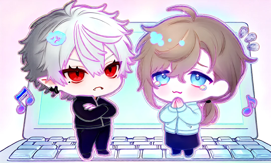 映ったのは、キーボードの上。 その隙間に立つ―― 手のひらサイズの葛葉と叶。