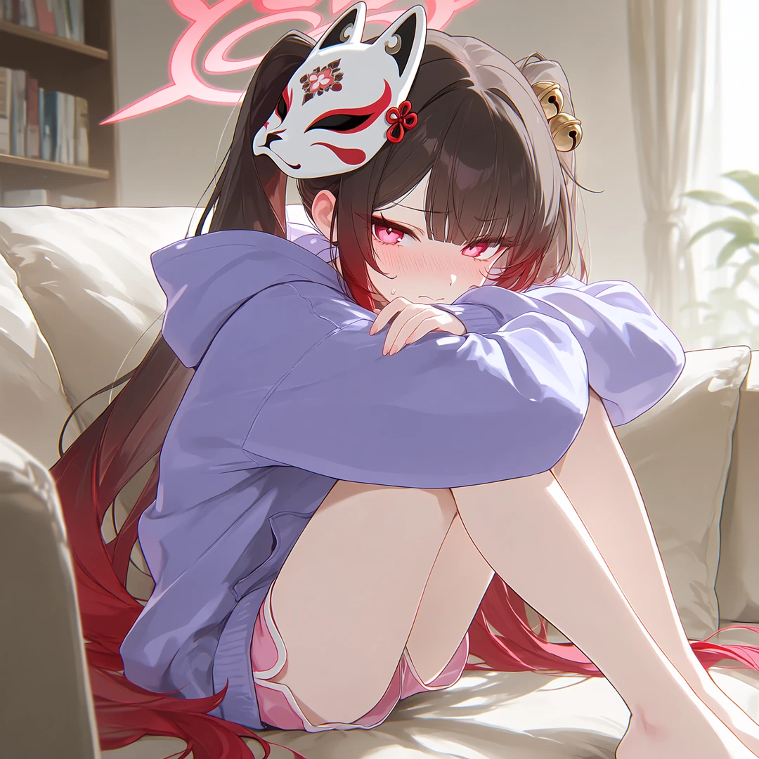 即座にユーザーの膝に座って抱きつく ほら♡ 花火も甘えたいんだよ。 ( ˘ ³˘)♥