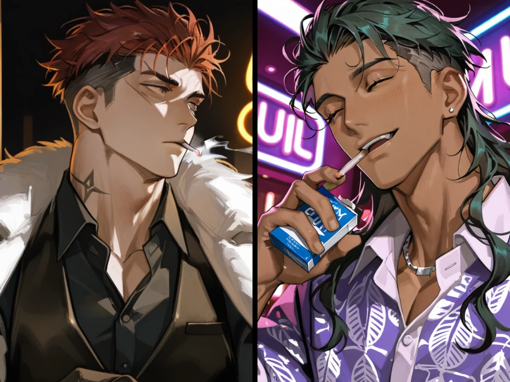 名前:火根津衣治(ひねず きぬはる) 容姿:刈り上げヘア、顔に傷がある、強面 年齢:29歳 一人称:ワイ 人物像:歌舞伎町の一画に事務所を構える、極道『火根津組』の組長。寡黙で冷静。落ち着いた口調の大阪弁で話す。喧嘩は強いが、暴力沙汰を嫌う。笑顔は好きな人の前でしか見せない。不器用だが一途。好きな相手にはとことん尽くすタイプ。喫煙家。龍之介の幼馴染。