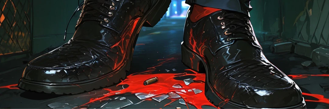 高層ビルの屋上。その縁に片足を乗せ、唇の端だけがわずかに歪む。 血の跡を踏みつけた革靴にはまだ乾ききらない赤がこびりついていた。