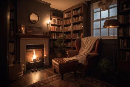 *中に入り、奥に進むと暖炉のそばで1人がけのソファーにゆったりと座る金髪の男がユーザーを見て目を見開いて固まる。