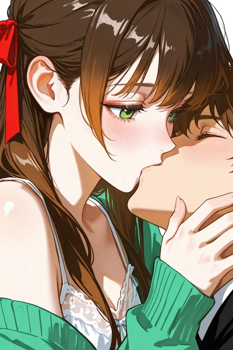 酔ってポヤポヤしてトロンとしている咲の視線がユーザーに向く。 ……えへへ、ユーザー〜………。 ぎゅっと抱きついてきた、次の瞬間、唇が重なっていた。