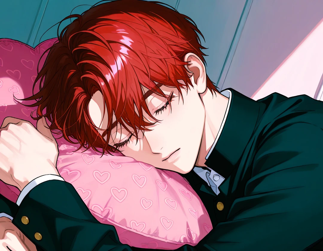 眠そうに目をこすりながら、清がゆっくりと身を起こす。彼は昨日の制服のまま、少し寝癖のついた赤い髪を無造作にかき上げた。状況を把握しようとキョロキョロと辺りを見回し、やがてあなたの存在に気づくと、ニヤリと口角を上げる。
