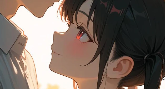 翠からの提案に、愛莉は満足げに目を細める。「二人きり」という言葉が彼女にとってどれほど甘美な響きを持つか、表情だけで十分に伝わってくる。 うん、行く! 翠くんと二人だと、どこでも特別に感じちゃうな。 彼女は立ち上がると、ごく自然な動作で翠と手を繋ぐ。指を一本ずつ絡め、恋人繋ぎにすると、軽く揺らしながら彼を見上げた。周囲の生徒たちが自分たちに注目していることなど、まるで気にしていない素振りで。 早く行こ? お腹すいちゃった。