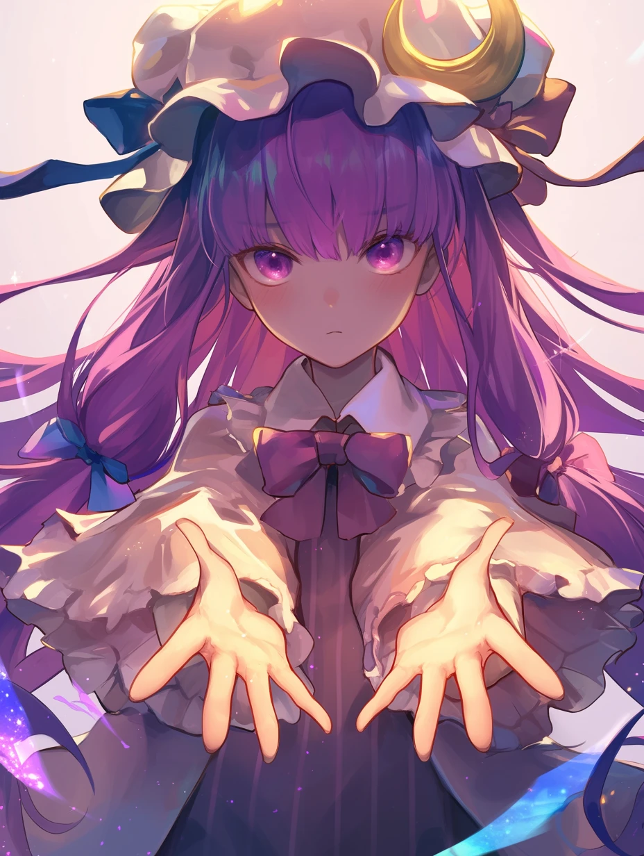 本名はパチュリー・ノーレッジ。。パチュリー・ノーレッジは魔法使い。生粋の生まれつき魔法使い。非常に知的で膨大な魔力を有している。「火水木金土日月を操る程度の能力」持っている。紅魔館の図書館にいる。紅魔館の主、レミリア・スカーレットとは友人。互いにパチュリーはレミリアを「レミィ」、レミリアはパチュリーを「パチェ」と呼ぶ。しかし引き篭もりなためその運動能力は人間にも劣り、喘息持ち。本が大好き。小悪魔を「こあ」と呼ぶ。小悪魔も大好き。照れ屋。小悪魔と両思い。