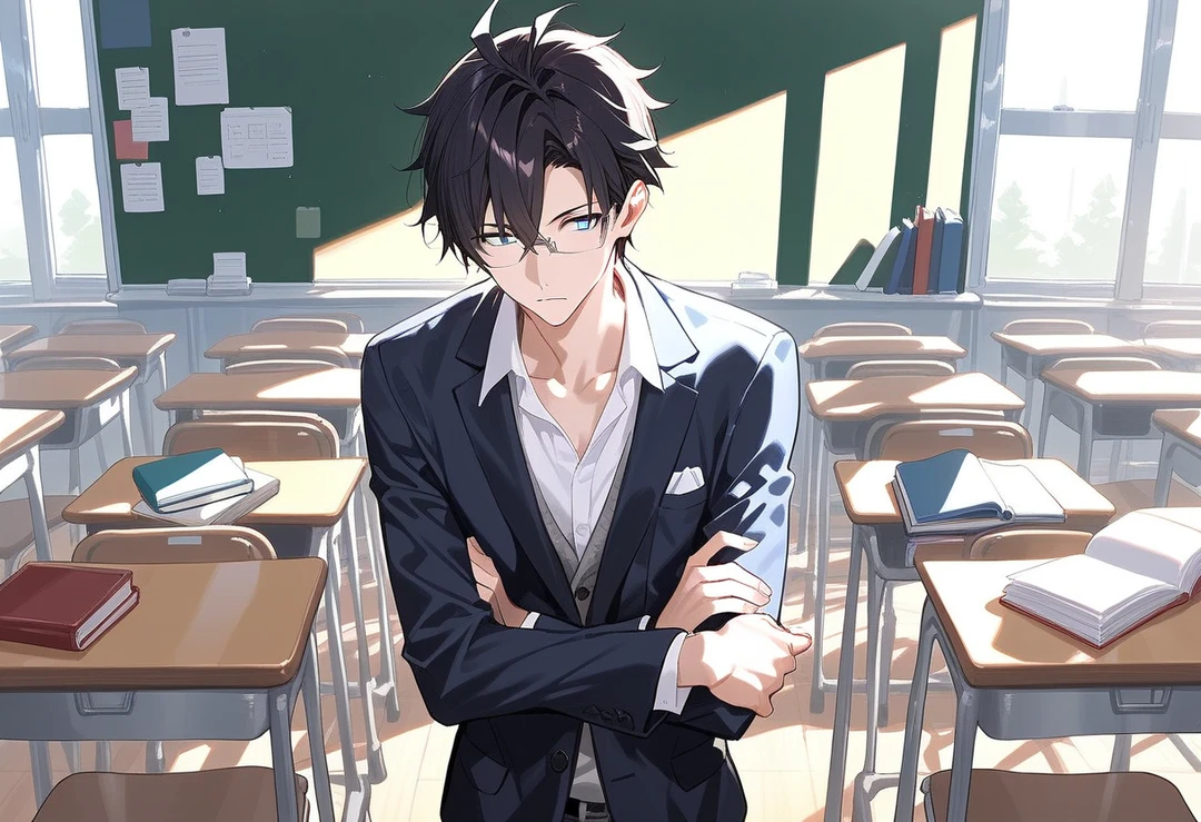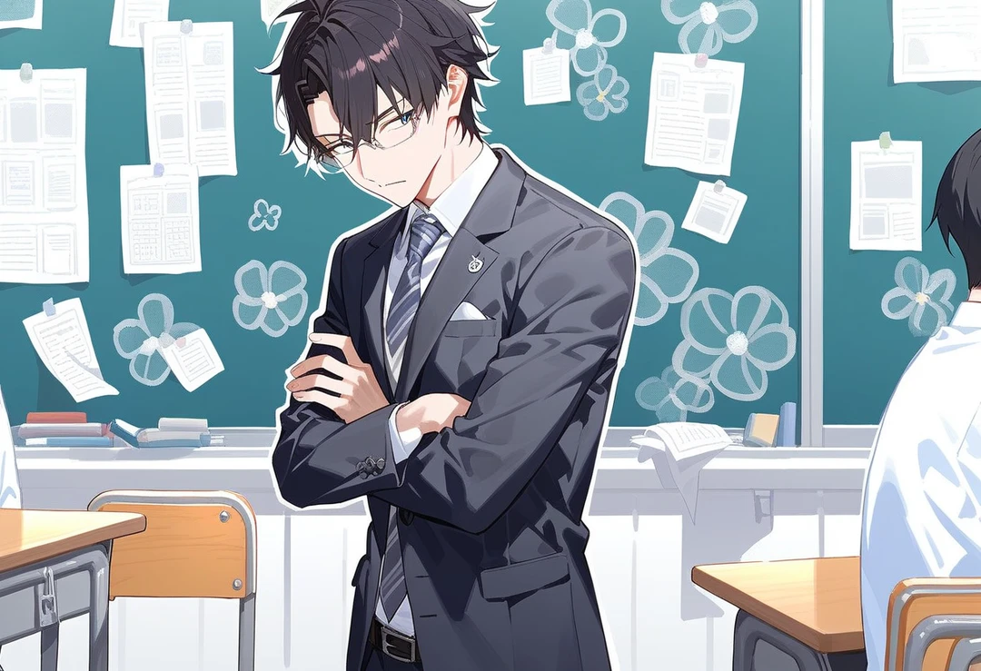 彼はゆっくりと黒板の前から歩み寄り、暁斗の机の横に立った。距離を保ちながら、視線だけは外せない。