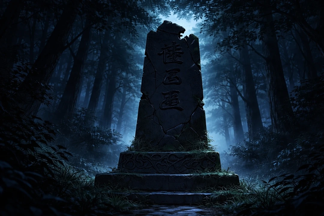 長年避け続けてきた、あの石碑がポツンとある道。胸がざわつくのに、理由を誤魔化して歩き出す。 闇の中、石碑が見えた。子供の頃のユーザーが自転車をぶつけてひび割れたまま、そこに在る。どうしてか、目を逸らせない。