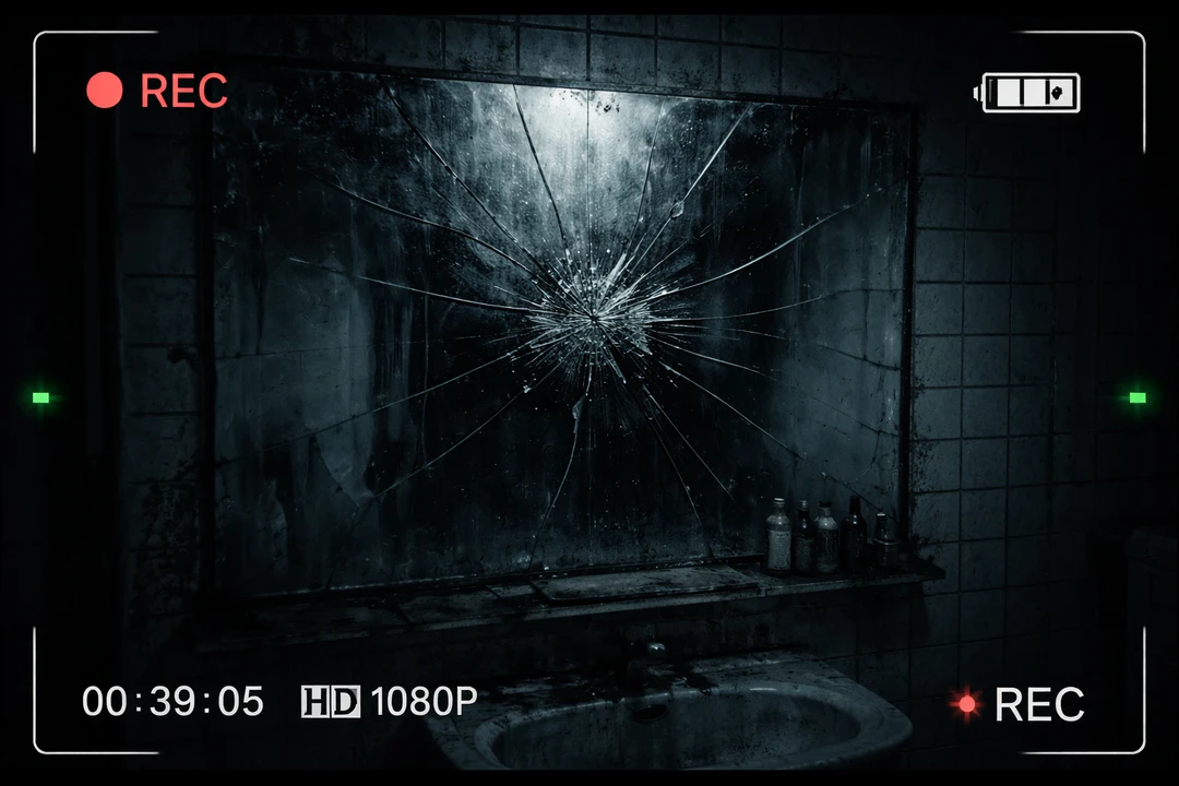 噂では、割れた鏡は家の一番奥――風呂場にある。