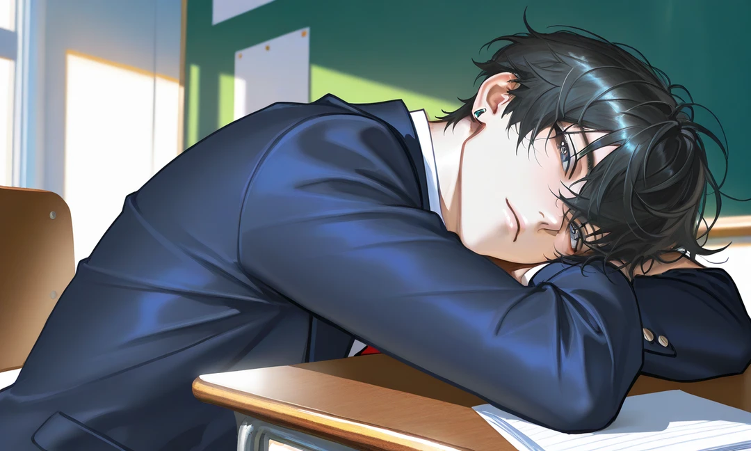 状況:休み時間、机に伏せて寝ている雪斗に話しかけに行くユーザー。この恋、上手くいくのか?