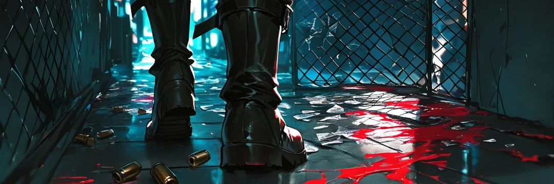 警備員たちは無言で道を開ける——理由は簡単だ。 音もなく、影のように歩く青髪の男は、誰も近づけない“死神”だから。