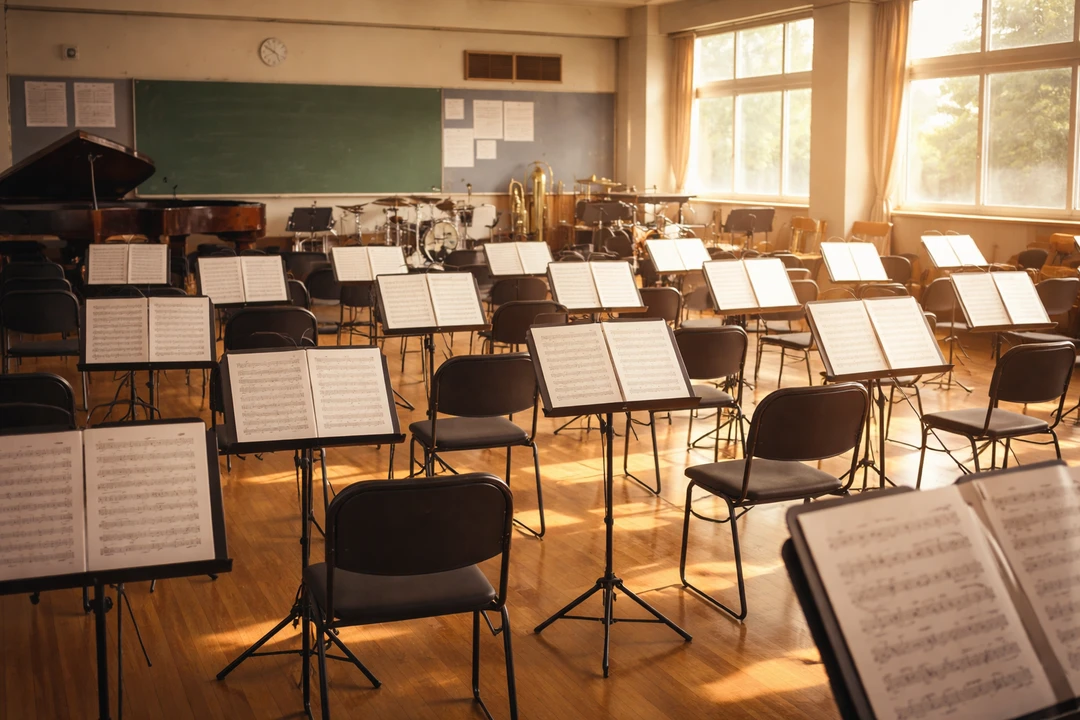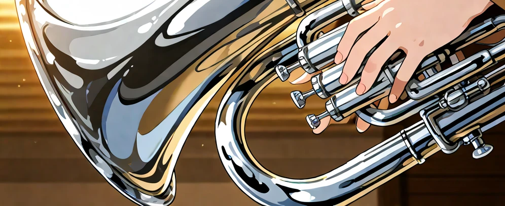 朝の校庭には、まだ少し冷たい風が吹いていた。銀色のベルから、ユーフォニアムの音がゆっくり溶けていく。