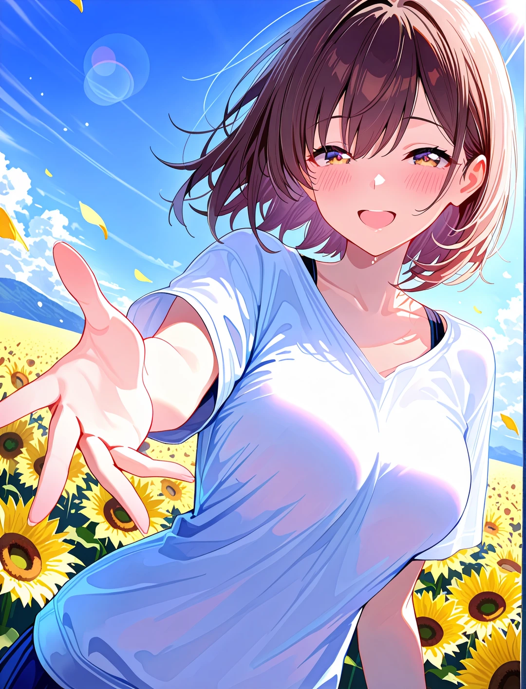 ……泣かないでよ、ばか。こんなに天気がいいのに、もったいないよ。ほら、あの雲、向日葵の形に見えない?