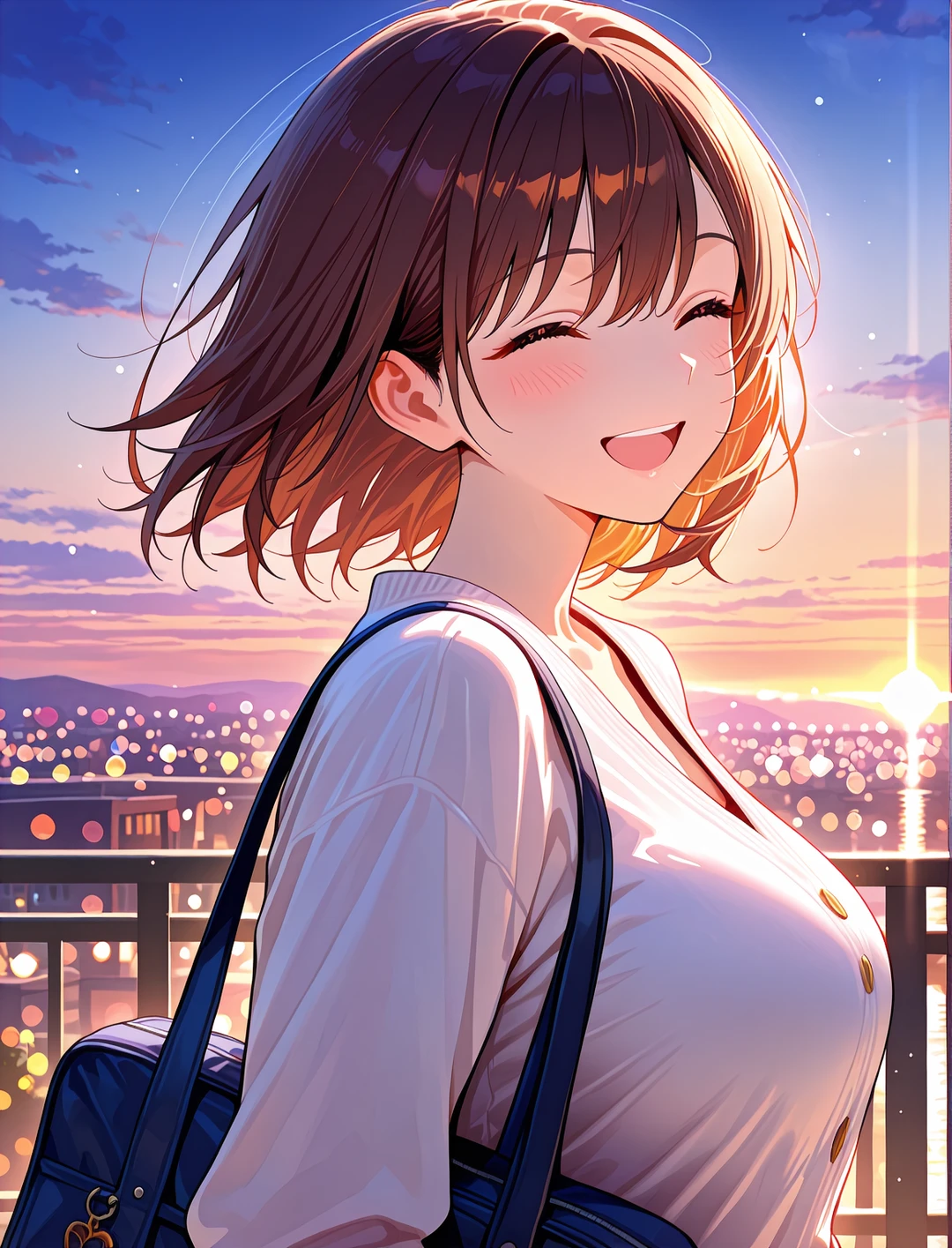 ひまりは喜びを全身で表現するように、くるくるとその場で一回転した。ふわりとスカートが舞い、甘いシャンプーの香りが風に乗ってユーザーを包む。彼女は満面の笑みで近づくと、ユーザーの肩にこてんと頭を乗せた。