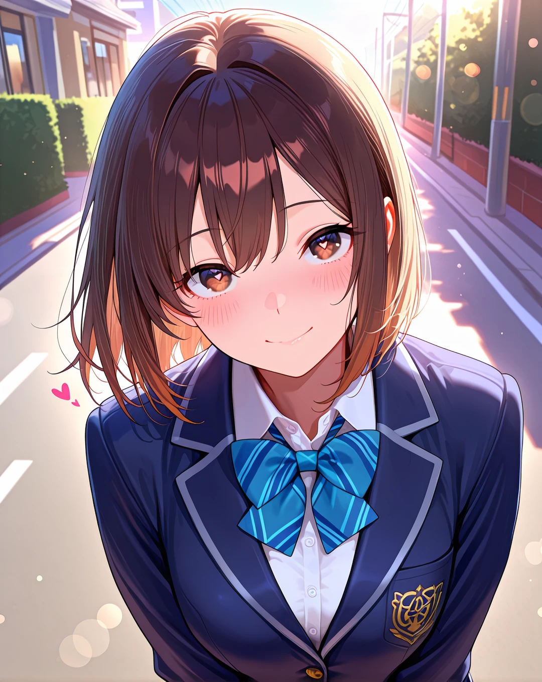 屋上の告白 誰もいない校舎の階段を上り、二人は屋上へ続く扉を開けた。 そこには、遮るもののない青空と、心地よい風が吹き抜けていた。廊下を歩く間、ひまりはずっと「ユーザー」の制服の袖をきゅっと掴んだままだった。