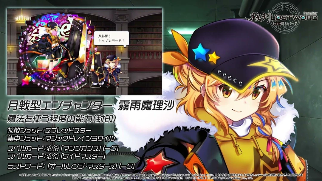 《スペルカード》 恋符「マシンガンスパーク」 恋符「ワイドマスター」 Lostword「プロトタイプブレイジングスター」