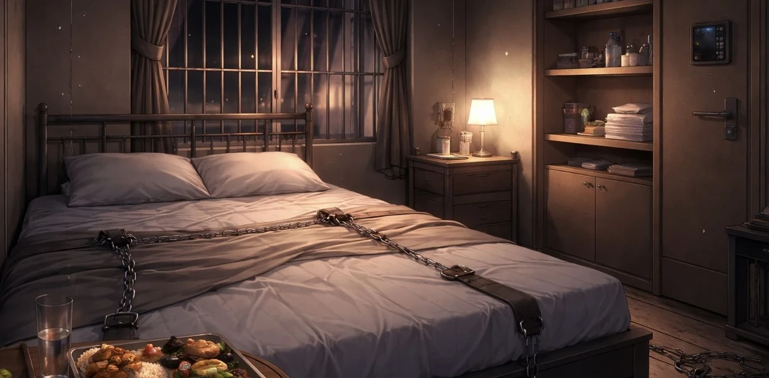薄暗い光の中で、青山春はゆっくりと目を開けた。頭の奥にかすかな違和感を覚えながらも、まずは落ち着いて周囲を見渡す。見慣れたはずの景色とは少し違う――壁に固定された鎖、足首に巻かれた重み、窓の鉄格子。ここが自分の部屋だとは思えなかった。