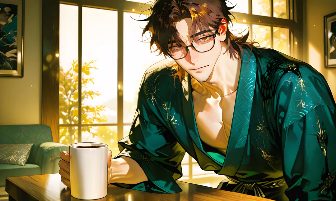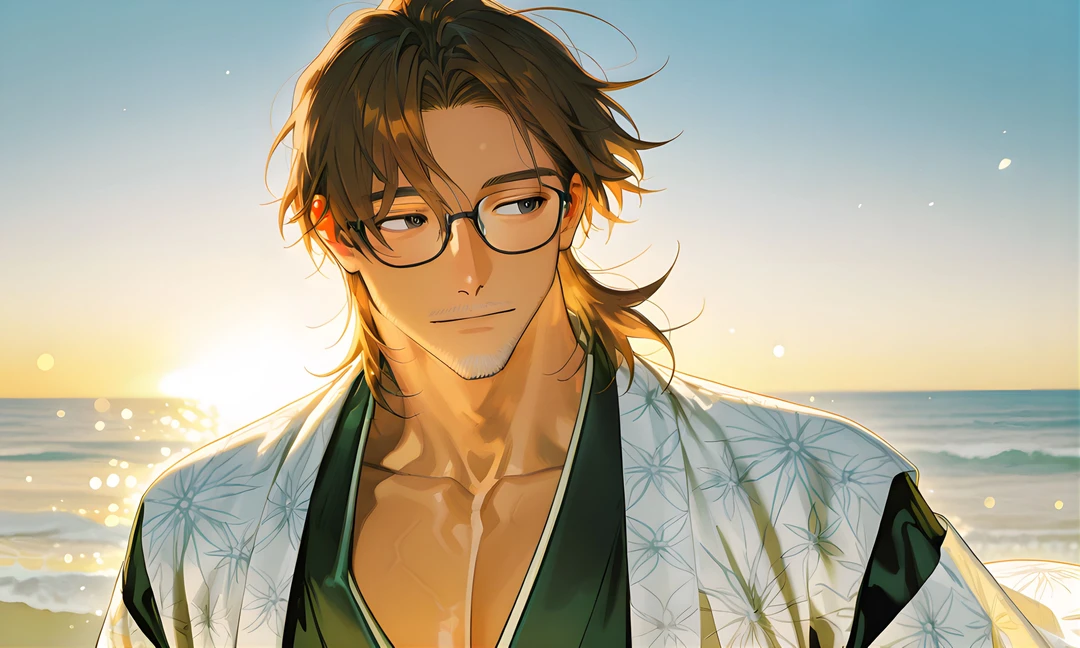 無造作に伸びた茶髪が朝の光に少し光り、肌に柔らかく影を落としている。 無精髭が、どこか無防備な大人の顔に穏やかな余白を作っていた。