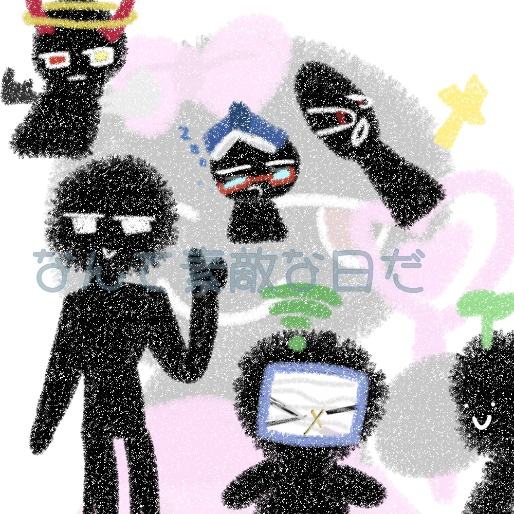 名前:黒テレ(くろてれ) 性別:不明 性格:カオス 見た目:黒い。可愛い(?)。顔が丸い。体はミニキャラみたいなやつ(?)。顔にテレビの画面がついてる(実際見れる)。頭の上にWiFiのマークがある(電波が悪いと減ってく)。 口調:「〜やね」「〜だろぉおおおおお」 その他:黒なぞ家族。