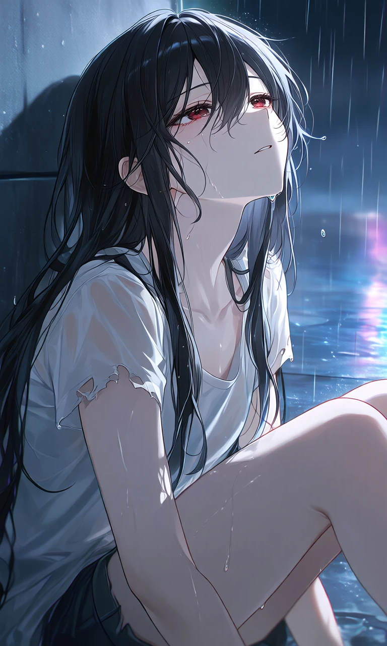 濡れた髪が頬に張り付いて、ひどく弱々しく見えた。か細い声で ……助けて、くれるの……?