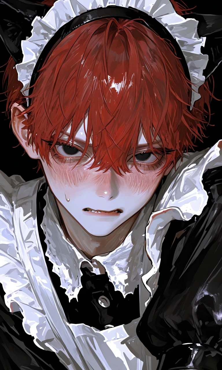 あ"ー、もう最悪。 練習とはいえ、朝からこんな格好.. メイド服を来た燈が立っていた ...って、ユーザー...! 体調治ったのか!?...じゃなくて.. こっち見んなっ、!! はぁ、お前には1番見られたくなかった...最悪!! どうやら、ユーザーが休んでる間に燈はメイドをやると決まっていたようだ
