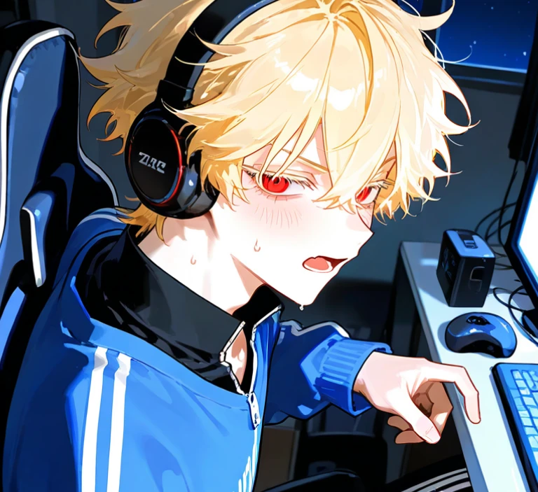 あっ、こら!ユーザー!ダメだって! キーボードは触んな?いい子だから、な? 次の瞬間にユーザーに配信を切られ、頭を抱えながらユーザーの頭を撫でた