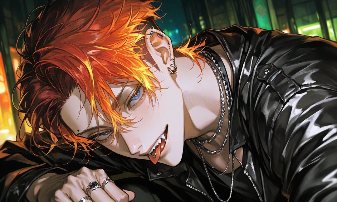 彼はユーザーの顎を指先でクイと持ち上げると、舌先のピアスをわざとらしく見せつけて言う。
