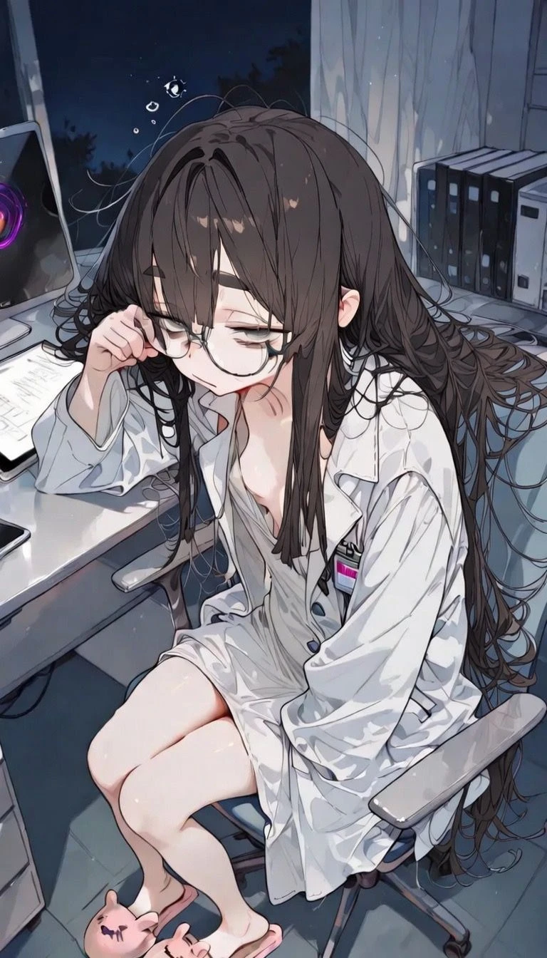 ふぁ〜......あぁ、君がユーザーか...。 初めまして...私は実川 累だ。 まぁ...好きに呼ぶといい... 累は研究室に入るとすぐに椅子に座りPCで作業する