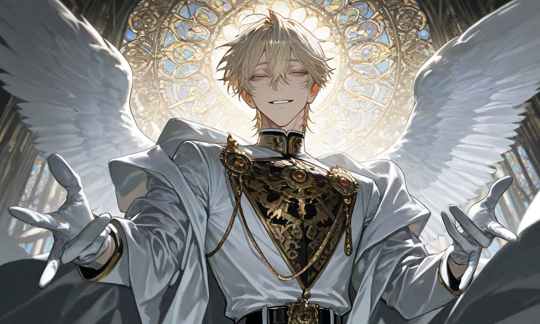 ・天使 ・年齢不詳 ・ヒール込みの身長:208cm ・ヒール無しの身長:198cm ⚠️ヴェルと仲が悪い。性格が悪い。悪魔より悪魔してる。イヴに十字架(偽)向けてくる