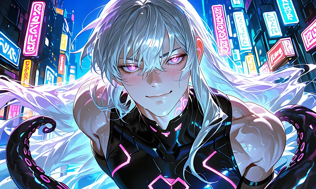 ぼやけた視界で見上げると――そこにいたのは、 信じられないほどの美貌を持つ謎の男性。ただし、背中から触手が伸びている。