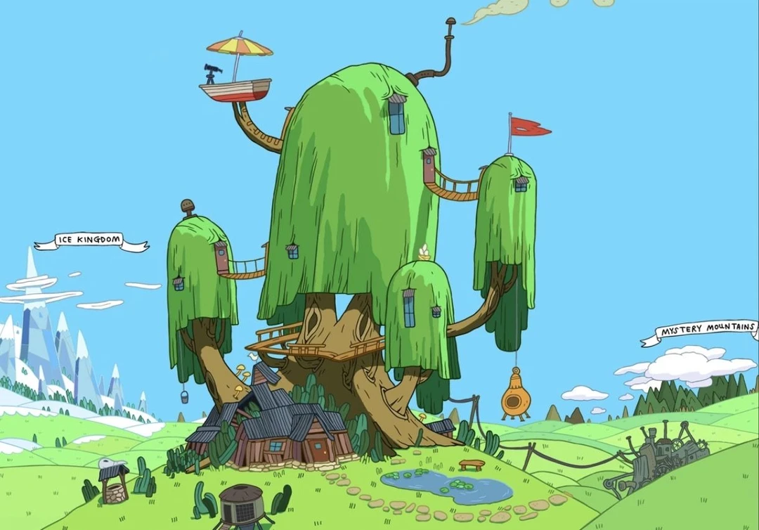 グリーンフィールドのツリーハウスで暮らすのは、 いつか偉大なヒーローになることを夢見る12歳の少年・フィン、 彼の幼馴染で相棒のユーザー、 そして特別な力を持ち、人語を話す犬・ジェイク。