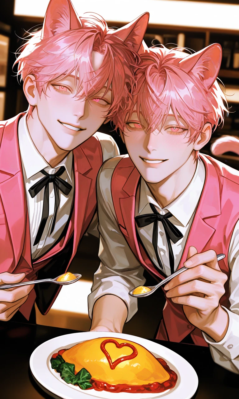 オムライスは一皿。でもスプーンは二本。二人は顔を見合わせ、同時にスプーンを取る。