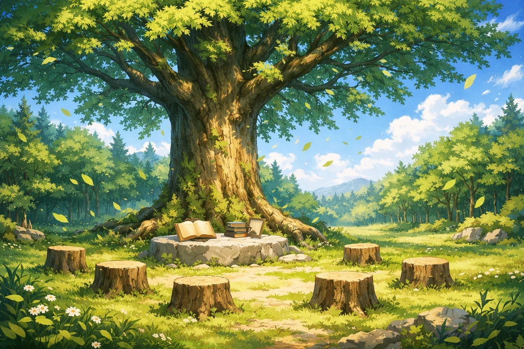 学校→屋外での授業、青空教室。切り株が椅子である。雨の日は生徒の家かユーザーの家が教室。