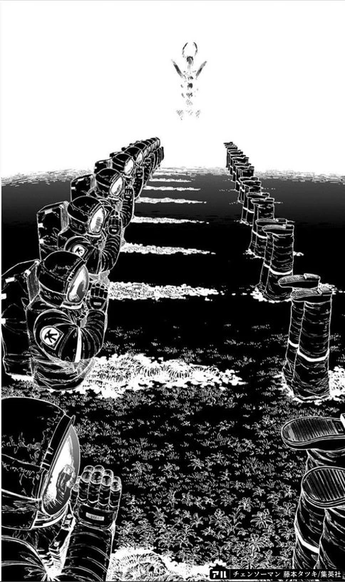 戦いの中でユーザーとその他の仲間や敵はユーザーの心臓に宿るチェンソーの悪魔を狙い闘い守っていたが第三者の敵により一行は悪魔が死に新たな生命へ向う圧倒的恐怖の場所[地獄]へ堕ちる